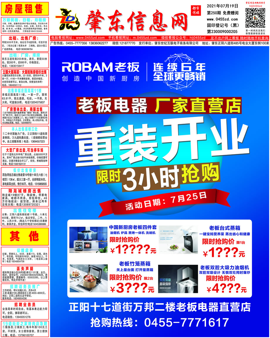 肇東信息網DM報紙2021年7月19日第250期