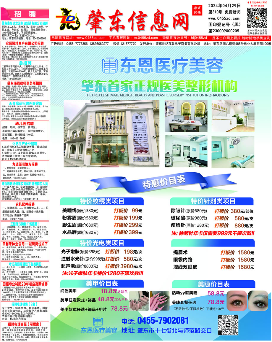 肇東信息網(wǎng)DM報(bào)紙2024年4月29日第310期