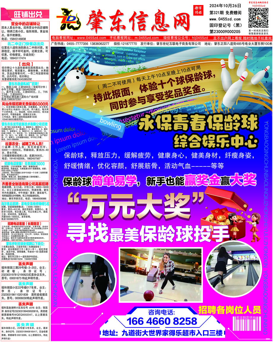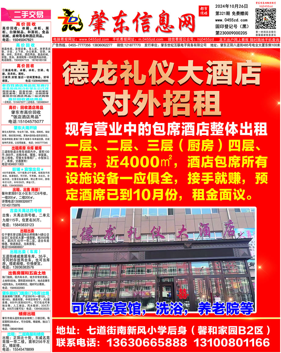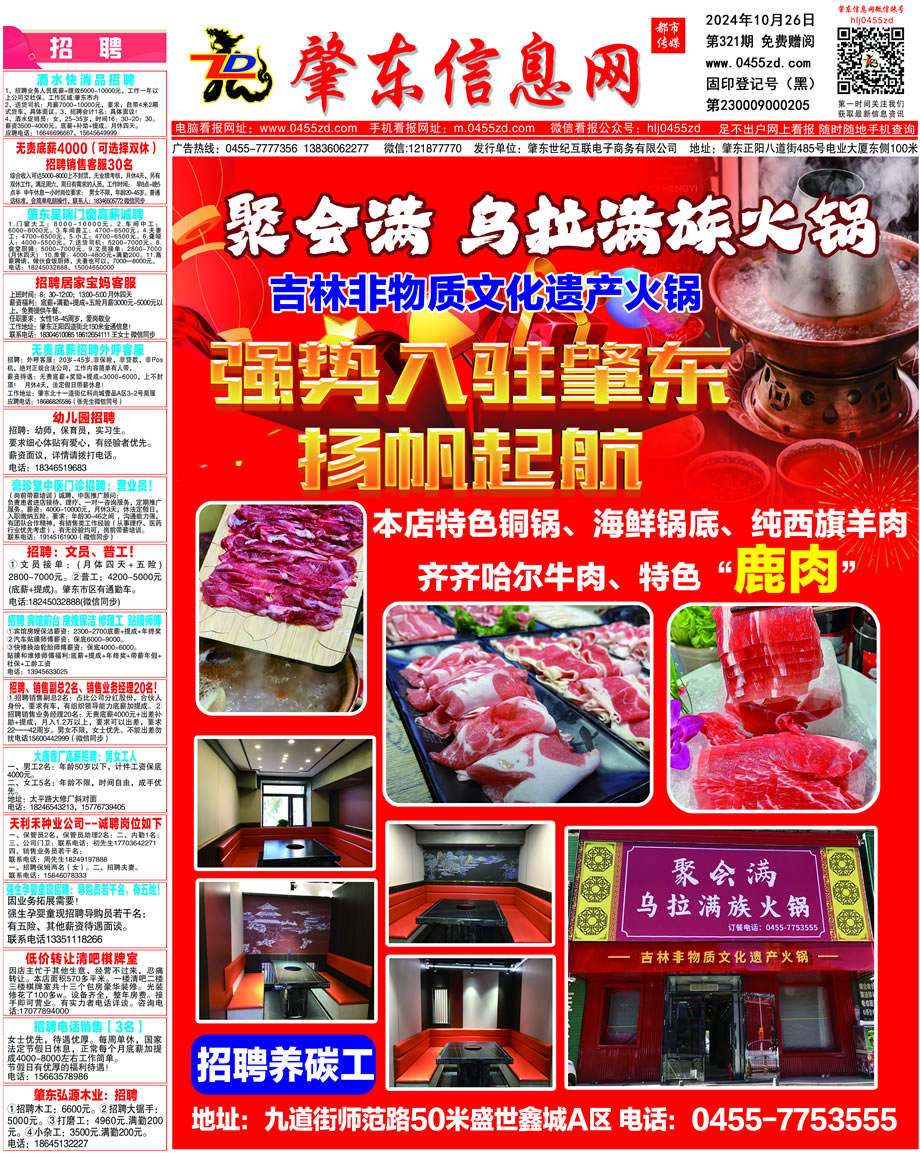 肇東信息網DM報紙2024年10月26日第321期