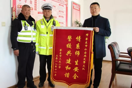 | 11月16日,肇東市三友小學黨支部副書記董潤生、副校長夏志軍一行三人來到市公安局交警大隊,送上一面寫有“情系師生安全、警校共建和諧”的錦旗和感謝信,盛贊交通民警... |