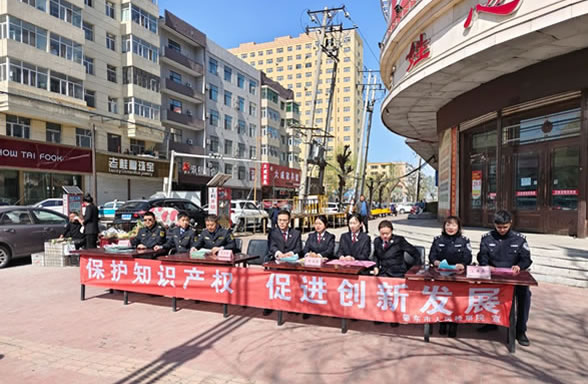 | 4月26日上午,在第24個“世界知識產權日”到來之際,肇東市公安局食藥環偵大隊聯合市場監督管理局、司法局、人民檢察院在肇東市四道街兄弟家電城門前開展“知識產權轉... |