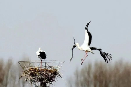 | 隨著天氣漸暖,大批珍稀候鳥將在北遷中飛抵黑龍江省肇東市千鶴島風(fēng)景區(qū)。其中,有“鳥界國寶”之稱的東方白鸛,也將在此筑巢繁殖。近日,為了迎接?xùn)|方白鸛的到來,風(fēng)景區(qū)工... |