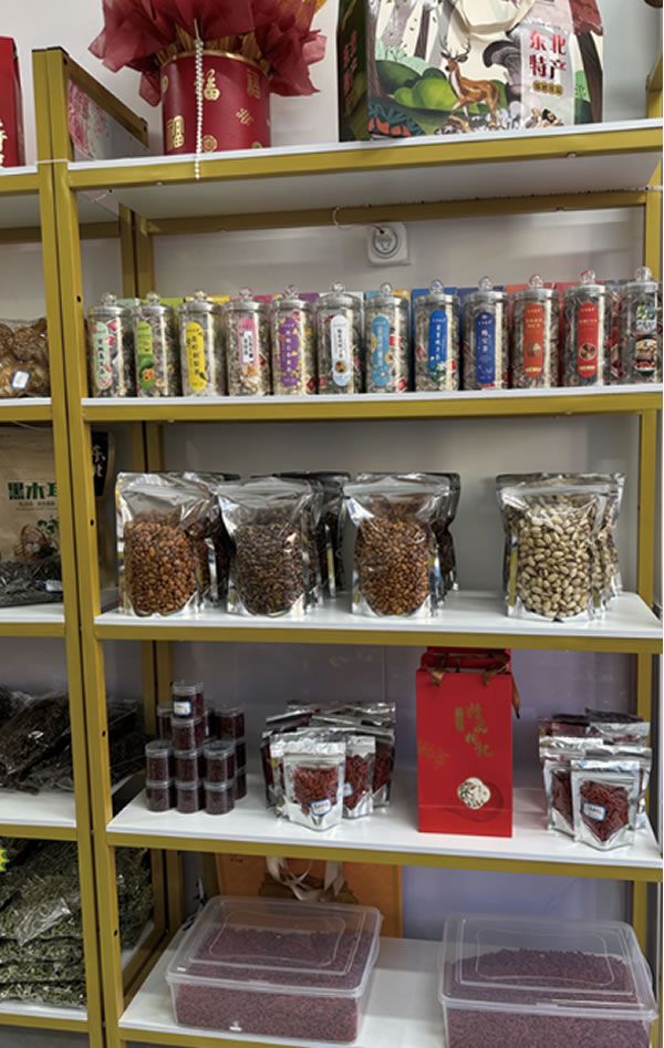 純東北椴樹雪蜜、五味子、枸杞、松茸、林下參、人參、鹿茸片、稻花香米、各種茶葉等應有盡有。