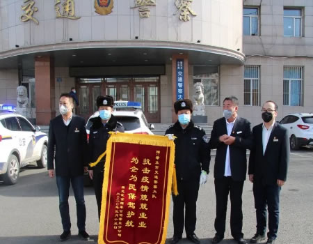 3月13日,肇東市煙草分公司主要領導來到公安局交通警察大隊,將一面印有“抗擊疫情兢兢業業為企為民保駕護航”的錦旗送到公安交警大隊教導員王德生、副大隊長曲斌手中,并為一線干警送來了慰問品。