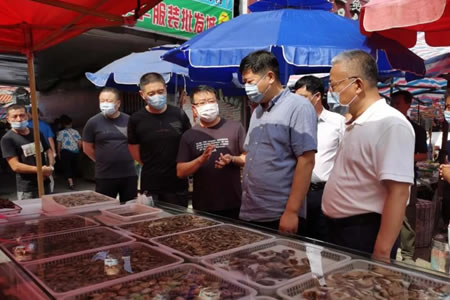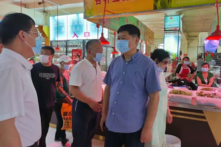 在陽光農貿市場,田宇副市長要求陽光農貿市場監管分局和市場開辦者高度重視疫情防控工作,持續做好防控措施的落實。針對人員流動量大的特點,要抓好衛生管理,保持市場內通風良好,強化消殺措施。切實提高場內攤床經營者的疫情防控意識,經營者之間保持安全距離。