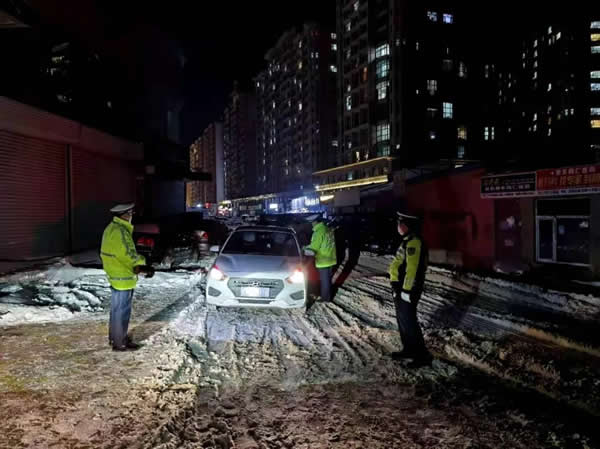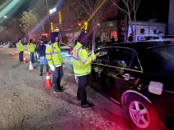 由于前一天全市普降大雪,道路結(jié)冰,酒駕等嚴(yán)重交通違法行為極易引發(fā)重大道路交通事故,交警大隊針對惡劣天氣的實際情況,采取定點設(shè)卡檢查和機動巡查相結(jié)合的勤務(wù)模式,將查處范圍向農(nóng)村擴展覆蓋,巡警大隊和農(nóng)村派出所通力配合,協(xié)同作戰(zhàn)。交警大隊大隊長帶領(lǐng)班子成員到執(zhí)法一線靠前指揮,全體干警履職盡責(zé),在全市轄區(qū)路網(wǎng)布置起了嚴(yán)查酒駕違法行為的“天網(wǎng)”。