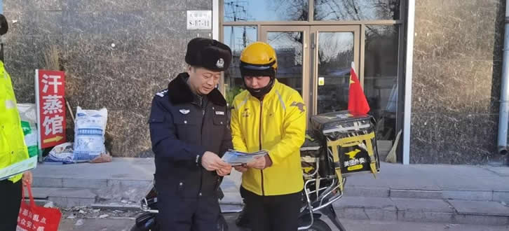 活動中,通過懸掛宣傳條幅、發(fā)放交通安全資料,警示各物流外賣企業(yè)要嚴(yán)格遵守交通規(guī)則,平安、便捷地為轄區(qū)居民群眾做好配送服務(wù)。曲斌同志根據(jù)物流配送人員、外賣騎手多數(shù)為電動三輪車、摩托車等兩輪三輪交通工具的實(shí)際情況,結(jié)合部局、總隊(duì)推送的典型宣傳案例,從未按規(guī)定佩戴安全頭盔、駕乘不系安全帶、駕車逆向行駛、駕車接打電話、違反道路交通信號燈通行、酒駕、醉駕、三超一疲勞等方面向配送人員騎手們著重講解了如何預(yù)防交通事故的發(fā)生,強(qiáng)調(diào)交通安全的重要性,以及交通陋習(xí)所造成的危害,呼吁快遞外賣從業(yè)人員文明守法出行嚴(yán)防交通事故。