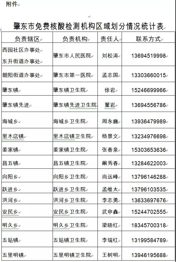 附件∶肇東市免費核酸檢測機構區域劃分情況統計表
