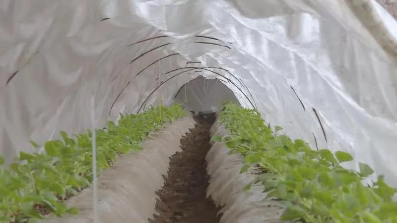 在五里明村張麗娟家的大棚內,一株株嫁接好的香瓜幼苗已經栽種完成,一壟壟翠綠的瓜苗映入眼簾,株株長勢喜人。