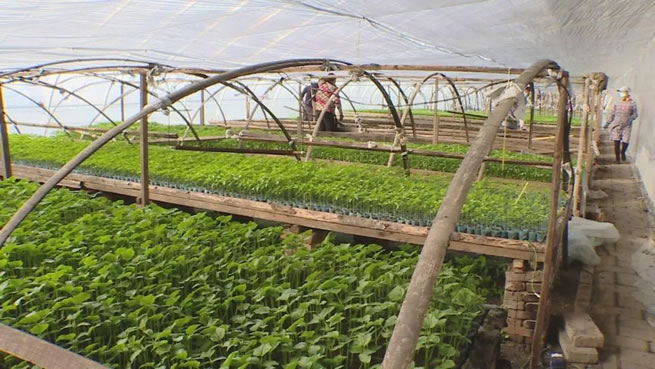 我們去年12月份就開始育苗了,今年計劃種4個溫室,30個大棚,一共是80畝地。等4月中旬辣椒就能采摘開賣了,五月份黃瓜就能下來了。