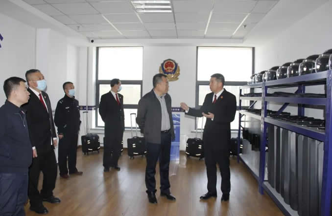 劉昭業一行實地察看了肇東法院訴訟服務中心、多元解紛中心、警用文化長廊、法警黨建活動室、法警辦公室、警用裝備庫、科技法庭、羈押室、掃黑除惡辦公室等場所。