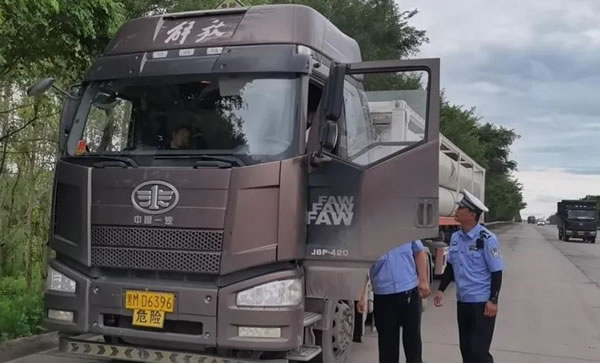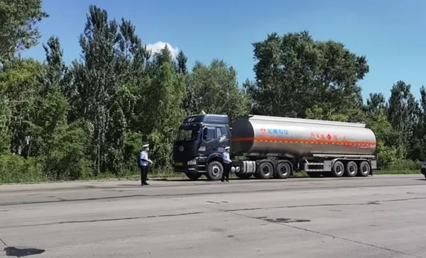 同時,執勤民警對危化品車輛駕駛人進行宣傳教育和交通安全提示,要求駕駛人加強對車輛的安全檢查和日常維護,嚴格遵守交通法規,按照限行時間和路線行車,提醒其當前進入夏季天氣炎熱,酷暑高溫,容易產生疲勞駕駛,一定要安全行車,確保自身及他人的生命財產安全。