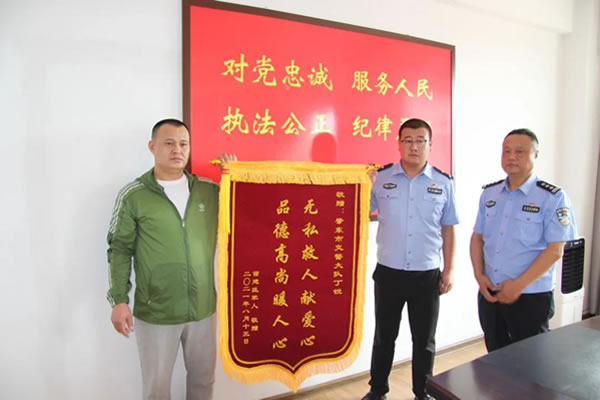 8月16日,肇東市民苗建臣的家人來到肇東市公安局交警大隊,送來一面印有“無私救人獻愛心,品德高尚暖人心”的錦旗,對輔警丁銳熱心救助其父親的行為表示由衷的感謝。