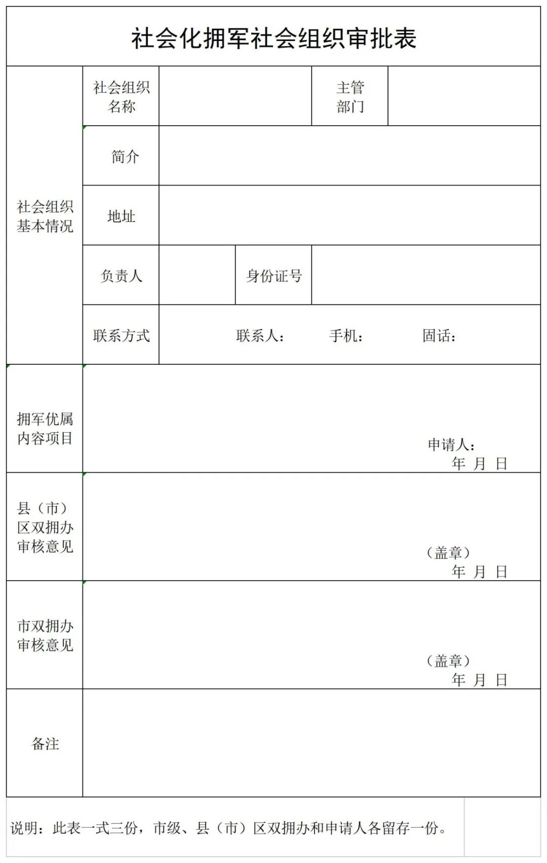 附件:《社會(huì)化擁軍企業(yè)(社會(huì)組織)審批表》