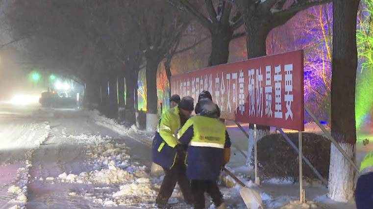 我們利用夜間車流少的有利時間段,出動大型除雪車、推雪鏟50余臺,500余名環衛工人,對城區各條街路進行清掃,清掃作業將持續24小時,確保道路暢通、市民出行安全。