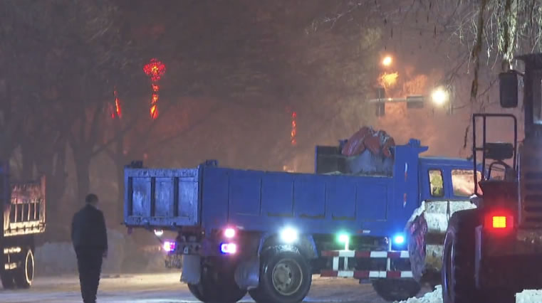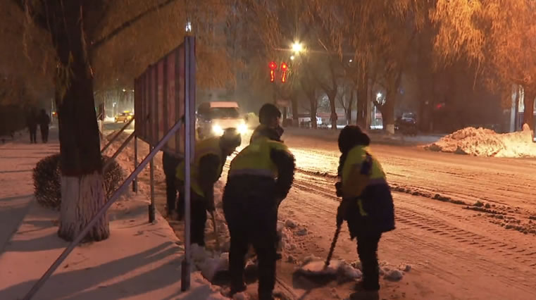 晚上八點,面對降雪量的增加,市城市管理綜合執法局組織環衛工人們按照“雪中清雪、邊清邊運”的原則,“以機械為主,人工為輔,機械和人工清掃有效結合”的循環清雪作業模式,對我市所有街道開展清除冰雪工作,經過連續作業,主干街道等很快就路見本色,路邊的雪堆也清運完成。隨后又對次干道、支路、背街小巷等路段進行清雪作業,全力保障早高峰市民出行安全。