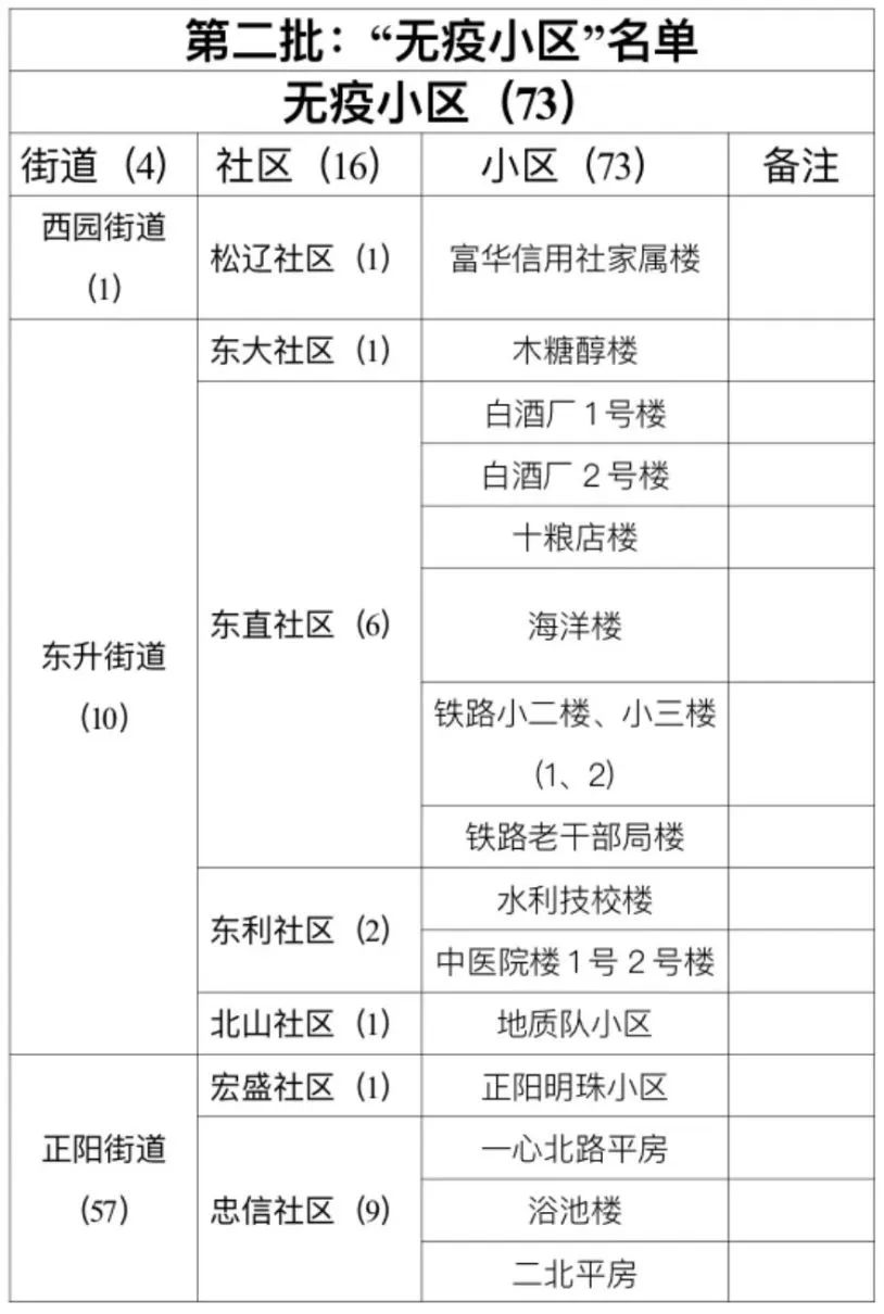 根據《肇東市“無疫小區(村屯)”創建工作方案(試行)》,經肇東市各社區(村)申報、街道(鄉鎮)審核,市專家組審定,第二批確定73個小區為“無疫小區”、7個小區為“準無疫小區”。