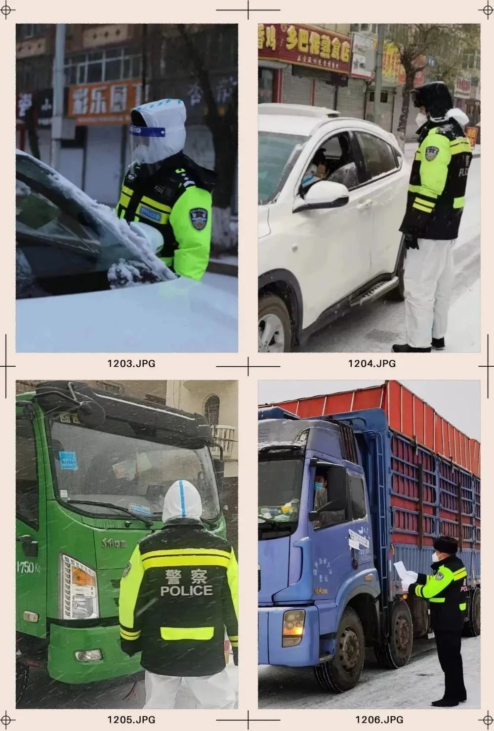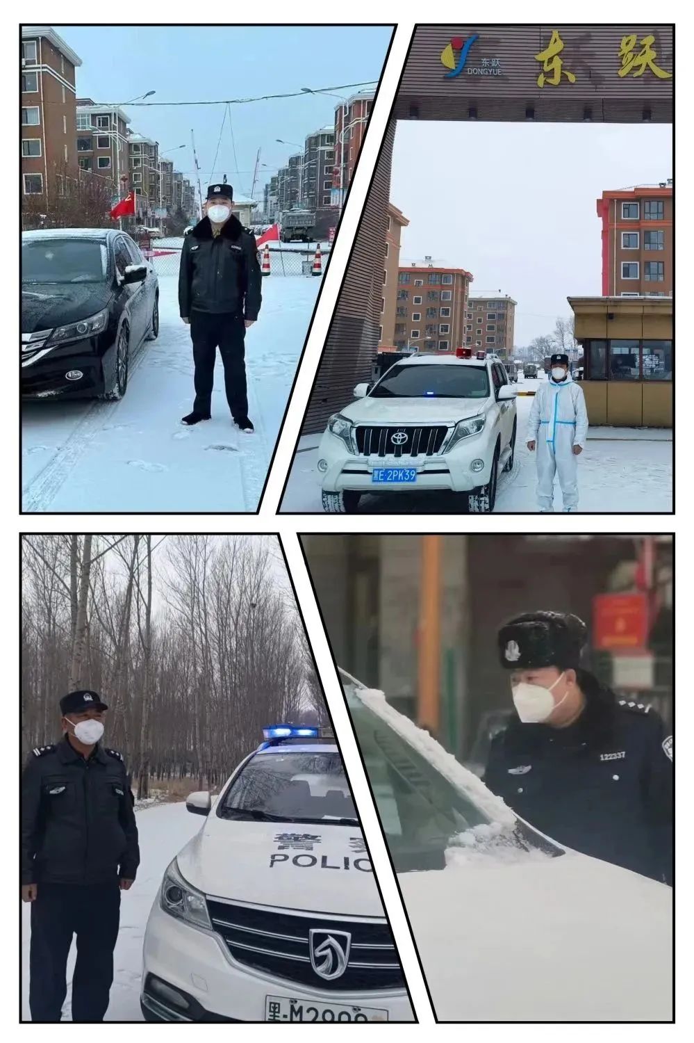 面對突如其來的惡劣天氣,肇東市公安局執勤民輔警頂風冒雪對相關車輛和人員耐心地宣傳疫情防控有關規定,在嚴厲打擊涉疫違法犯罪的同時,不斷強化文明、理性、柔性執法,讓群眾切實感受到公安機關執法的溫度,贏得了肇東百姓的支持和認可。在疫情防控卡點,執勤民輔警們依舊是一絲不茍,克服天氣寒冷等不利因素,對進入城區的車輛和司乘人員嚴格按照防控工作要求,做好人員和車輛信息登記,嚴防疫源攜入。交警大隊執勤民輔警冒雪堅守各執勤崗,嚴格執行疫情防控期間交通管控措施。各城鄉派出所執勤民輔警認真執行疫情防控任務,冒雪堅守崗位開展執勤管控工作,全力奮戰在疫情防控一線,確保疫情防控工作有序開展。自疫情臨時管控以來,肇東公安民輔警“逆行”而上,勇敢的奮戰在防控一線,彰顯了無私奉獻的精神和義無反顧的擔當,用實際行動全力守護著人民群眾的平安。