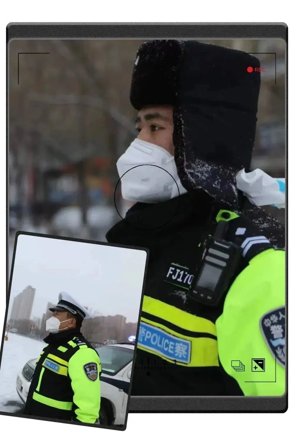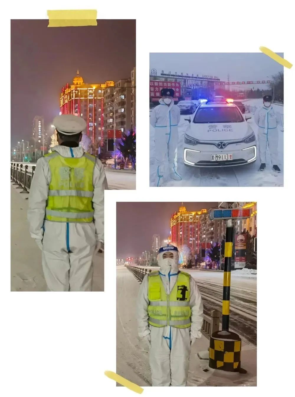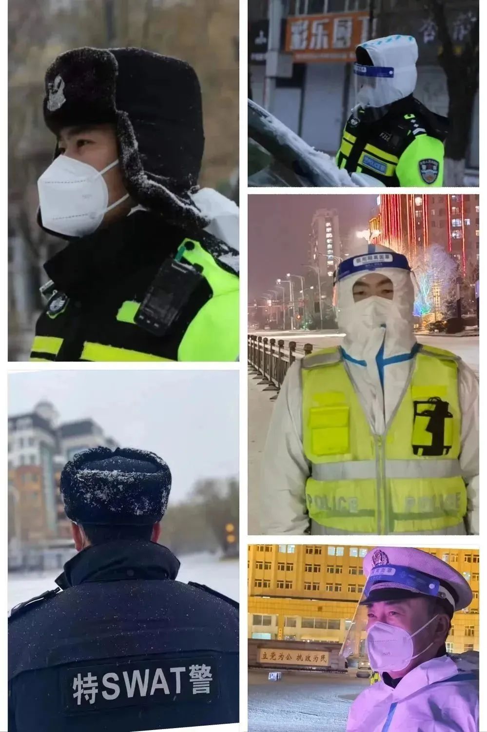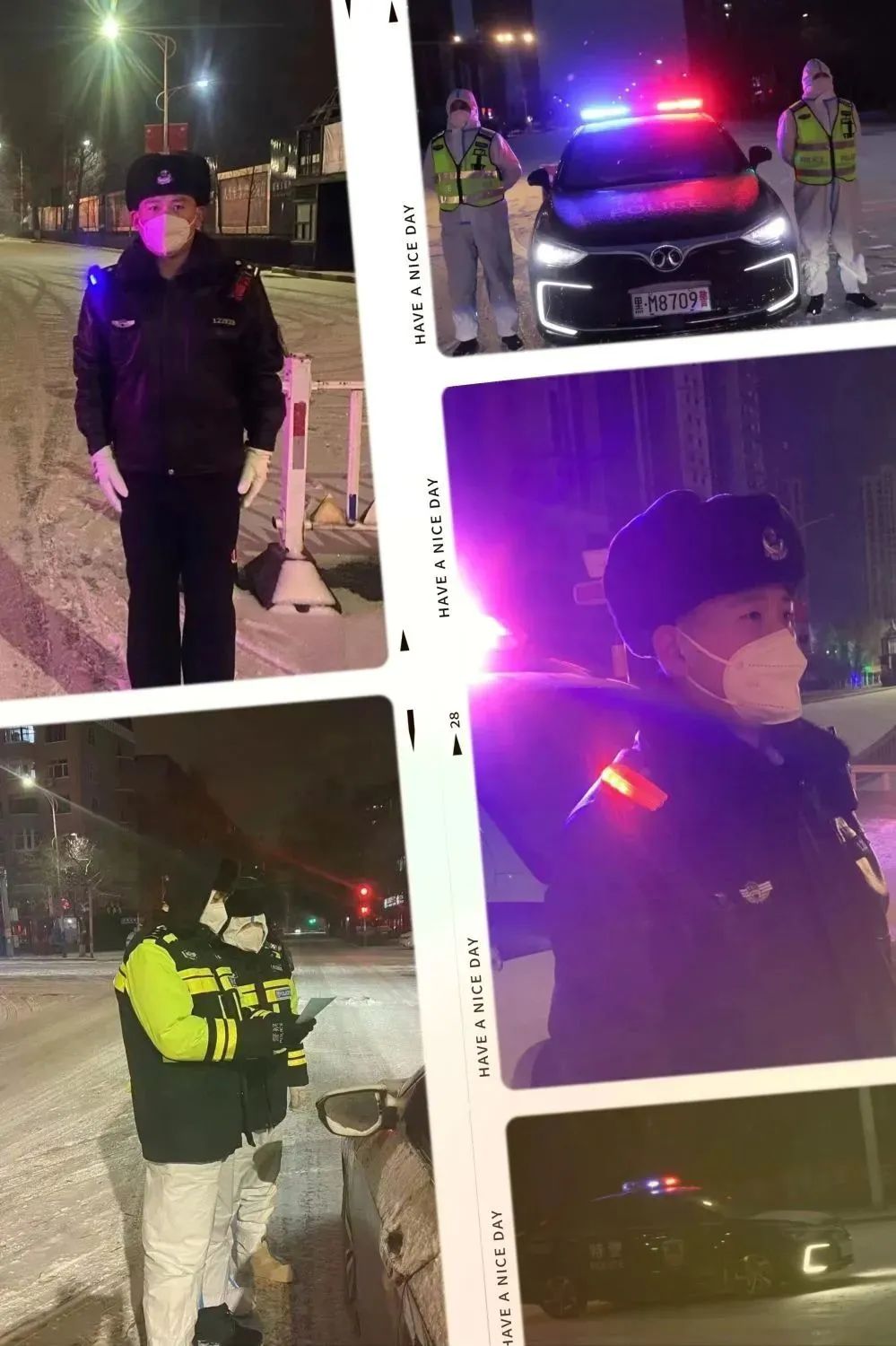 11月24日下午,天空中飄起了紛紛揚揚的雪花,大雪點綴裝扮了整個城市,也給奮戰在疫情防控一線的民輔警帶來了極大的考驗,但再惡劣的天氣也無法阻擋肇東公安民輔警堅決戰勝疫情的決心和腳步,他們目光執著、信念堅定,用責任和擔當為群眾筑起一道道生命防線,守護著肇東人民群眾的的幸福與平安,構筑起全市疫情防控的安全屏障,用剛毅挺拔的身軀在疫情防控一線筑起最美雪“警”。