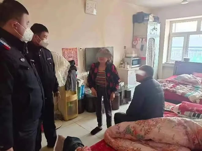 2022年11月28日上午8時,躍進派出所巡邏民警在躍進鄉全勝村公路旁積雪的壕溝里發現一名臥倒的老人,巡邏隊員立即上前查看情況,扶起老人后發現他神情恍惚、言語混亂,民警一時無法問清其姓名、住址、家人等基本情況。考慮到氣溫較低,外面又刮著風,民警將警服披在老人身上后立即將老人扶上車,并將老人帶回所里進一步核實身份,幫助聯系其家人。到派出所后,民警一邊為老人倒上熱水,一邊與老人通過聊家常的方式了解信息,在確認了老人的家庭住址在昌五鎮后,民警立即驅車將其送回了家,家屬稱老人因為患病,昨天晚上走失,家人找了一夜,如果不是派出所的警察發現后果不堪設想,家屬對派出所民警的援手救助表示衷心感謝。