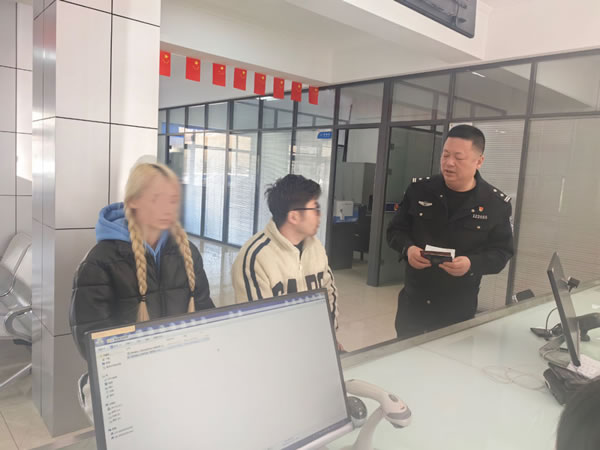 3月27日,肇東市公安局出入境管理大廳迎來了一對神情焦急的夫婦尋求幫助,肇東居民姜先生攜外籍妻子趕到出入境接待大廳咨詢辦理外國人簽證的相關(guān)問題,工作人員詢問得知,姜先生與妻子卡琳娜因工作原因長期居住在浙江省金華市,由于妻子卡琳娜簽證問題夫妻二人輾轉(zhuǎn)千里回肇東辦理簽證,民警秉承“群眾利益無小事、為民服務(wù)無終點(diǎn)”的理念,在審核基礎(chǔ)資料后,協(xié)助兩人僅用半小時(shí)就成功辦理了簽證,解決了群眾的實(shí)際困難,提高了群眾的獲得感、幸福感、安全感。