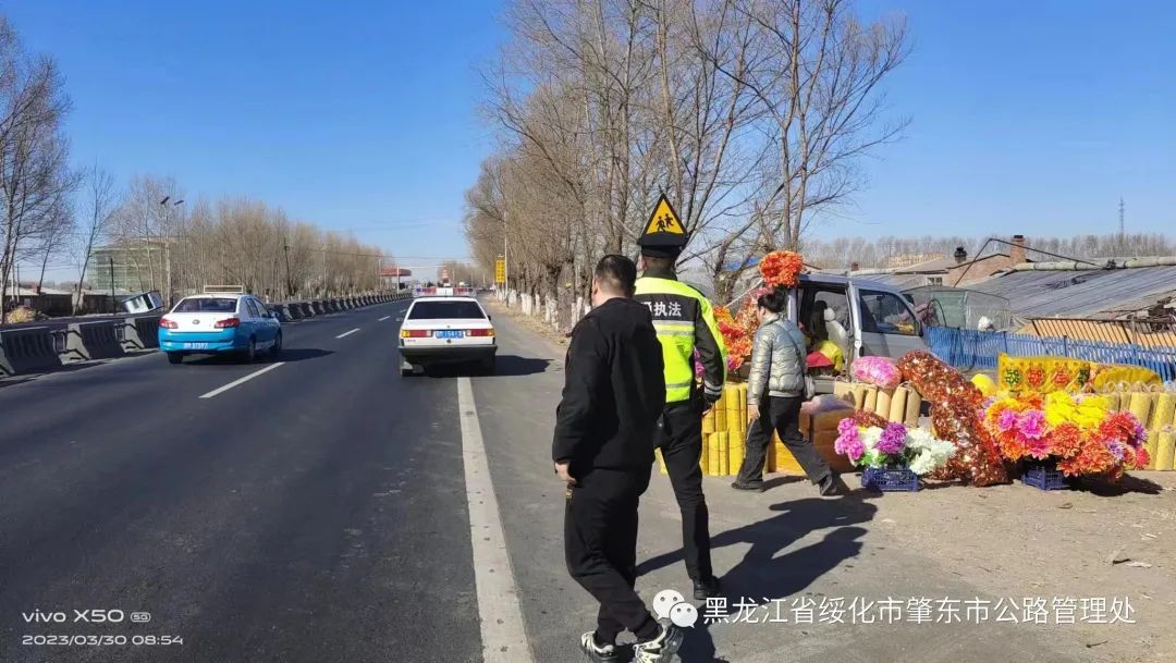 截至目前,共出動執法人員105人次,執法車輛20余臺次,拆除違法搭建2處、非公路標志11塊,取締非法占道經營28處,清除違法堆放9處。