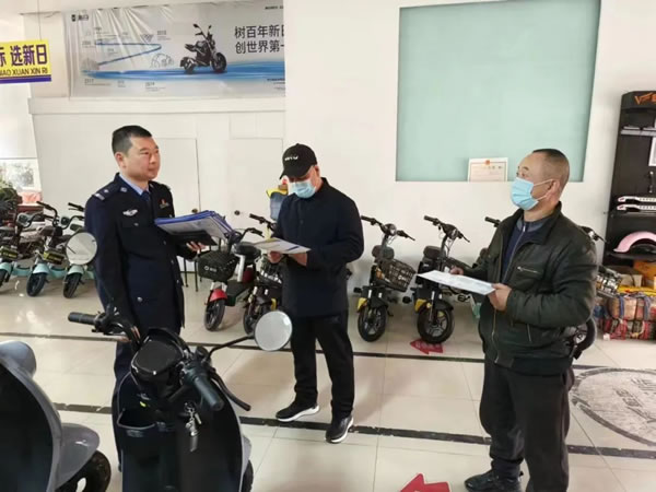 在經(jīng)銷商鋪,民警對(duì)電動(dòng)車經(jīng)銷商應(yīng)履行的責(zé)任、義務(wù)和消費(fèi)者享有的權(quán)利等方面,對(duì)《黑龍江省電動(dòng)車管理?xiàng)l例》進(jìn)行了詳細(xì)解讀,要求各電動(dòng)車經(jīng)銷商在銷售電動(dòng)車時(shí)必須依法向消費(fèi)者提供購車發(fā)票、產(chǎn)品合格證,并告知產(chǎn)品特征,從銷售環(huán)節(jié)上杜絕違規(guī)電動(dòng)車上路行駛。