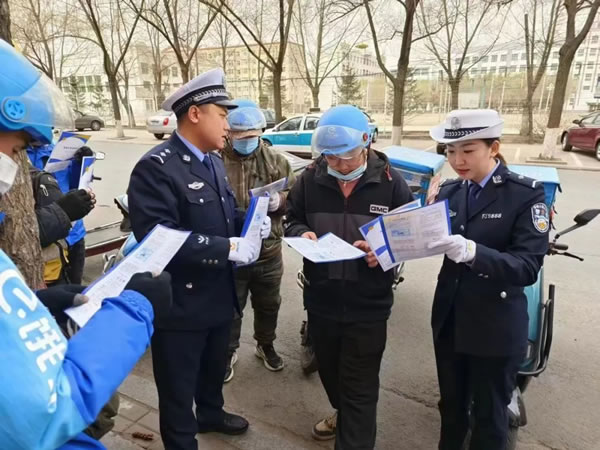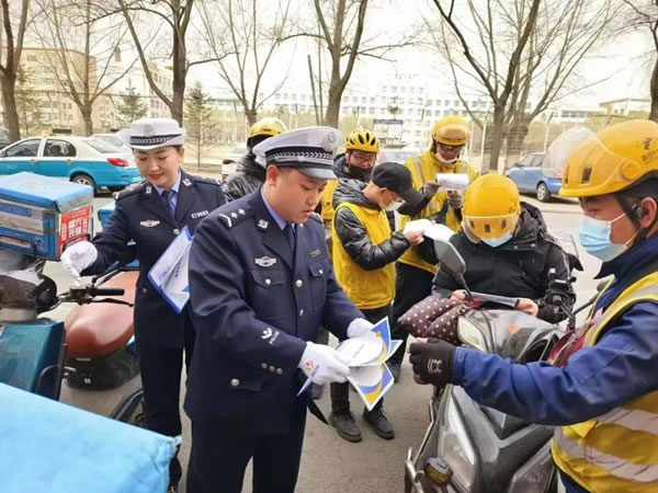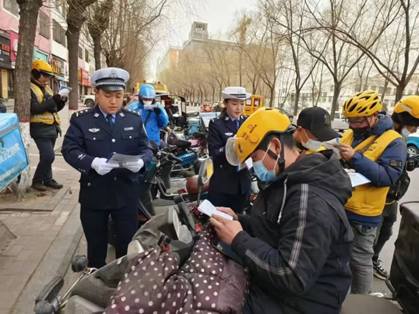 在快遞外賣企業(yè)及人員聚集場所,民警以發(fā)放宣傳資料、粘貼《黑龍江省電動(dòng)車管理?xiàng)l例》宣傳單等方式,詳細(xì)講解電動(dòng)車的種類、認(rèn)定標(biāo)準(zhǔn)、電動(dòng)車登記程序等通行規(guī)定。提醒廣大群眾在騎乘電動(dòng)車時(shí)要正確佩戴合格的安全頭盔,杜絕闖紅燈、逆向行駛、酒后駕駛等各類交通違法行為。引領(lǐng)廣大群眾遵守電動(dòng)車通行規(guī)定,摒棄交通陋習(xí),做到守法規(guī)知禮讓,安全文明出行。