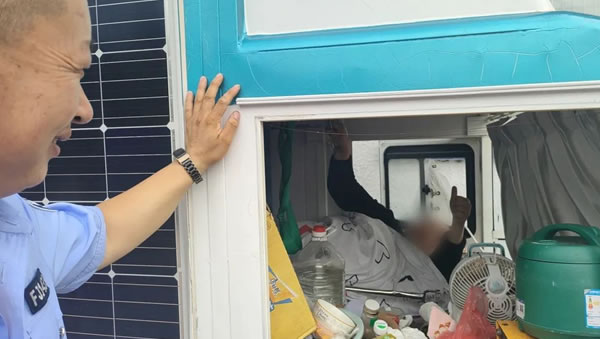肇東鎮派出所接到求助后,立即驅車趕往現場,只見一輛白藍相間的電動車停靠在路邊,駕駛員因高位截肢行動不便只能留在駕駛室內。劉某是湖北人,早年的車禍導致高位截肢,他雖然身有殘疾,但不妨礙想走遍祖國大好河山的夢,原本想著七一期間可以走到大慶,沒想到半途中車輛發生故障無法移動,考慮到自己行動不便,情急之下向民警求助。