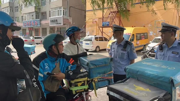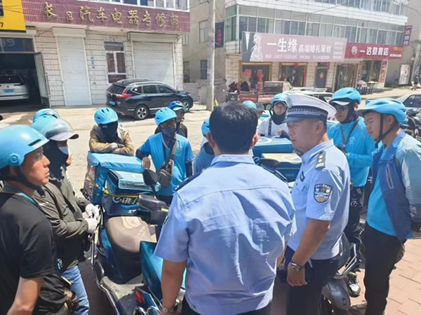 活動中,民警首先同企業負責人進行了深入詳談,要求企業加強對員工的交通安全教育,時刻繃緊安全神經,把交通安全放在工作首位。結合外賣騎手們的職業習慣、駕駛特點等,通過面對面講解的方式,強調了正確佩戴安全頭盔的重要性,要求騎手在行車過程中做到不接打電話、不酒后駕駛、不逆行、不闖紅燈、不走機動車道。通過交通事故典型案例對外賣騎手開展警示教育,讓大家意識到騎乘電動車戴好安全頭盔的重要性,并向外賣騎手詳細講解相關法律法規,現場教授正確佩戴安全頭盔的方法。