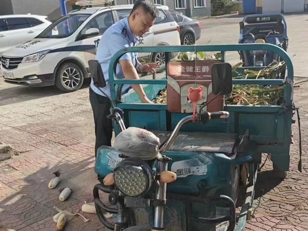 9月14日下午14時許,海城派出所民警在巡邏到長興村1組一片玉米地時,發現一臺電動三輪車在玉米地邊停靠,長興村村民劉某正在往三輪車上裝玉米穗,巡邏民警發覺事情可疑立即上前詢問,經查,劉某交代自己騎三輪車經過被盜玉米地時,看到地里的玉米長得很好,想著自己家里的牛正需要飼料吃,于是徒增盜心,就掰了197穗玉米棒裝在車上,準備帶回家給老牛吃,沒想到還沒裝完就被派出所抓獲。民警看到玉米地里一片狼藉,玉米稈東倒西歪,上面的玉米棒被劉某掰走。玉米是群眾辛勤勞作而得到的勞動果實,收獲在望卻被他人偷走,群眾的心情可想而知。