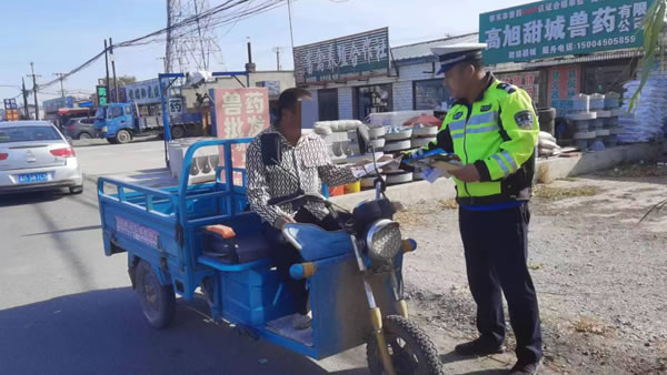 當前正值秋收旺季,為持續推進“保秋收 壓事故”專項整治行動,做好轄區農村道路交通安全管理工作,全力遏制和減少秋收農忙季節道路交通事故。近日,肇東公安交警聯合市農業農村局,積極組織人力深入村鎮開展交通安全宣傳活動,為秋收時節農村地區筑牢" />