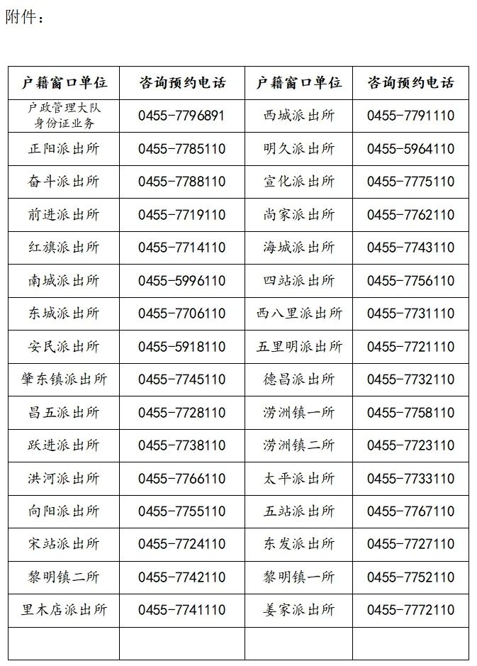 附件:公安機關戶籍窗口單位咨詢及預約電話