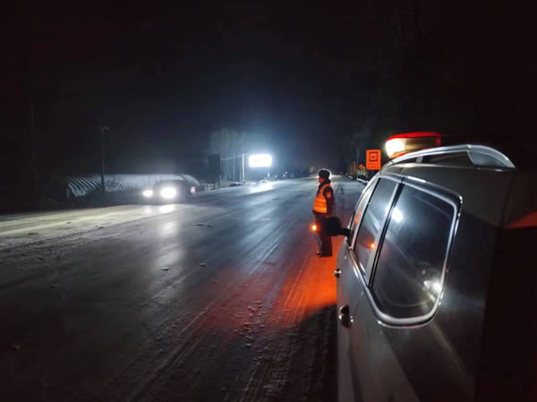 肇東市公安局交警大隊(duì)和國(guó)、省道沿線派出所民警輔警全員上崗,緊盯積雪結(jié)冰重點(diǎn)部位和車流密集場(chǎng)所周邊路段,積極采取措施,采取定點(diǎn)執(zhí)勤與流動(dòng)巡邏相結(jié)合的方式,加強(qiáng)路面管控和交通疏導(dǎo),全力防事故、保暢通。同時(shí),增派人手,一旦發(fā)生交通事故,第一時(shí)間到達(dá)現(xiàn)場(chǎng)處置,并及時(shí)疏導(dǎo)交通,引導(dǎo)車輛有序通行。