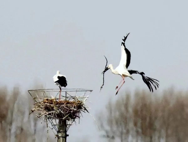 隨著天氣漸暖,大批珍稀候鳥將在北遷中飛抵黑龍江省肇東市千鶴島風(fēng)景區(qū)。其中,有“鳥界國(guó)寶”之稱的東方白鸛,也將在此筑巢繁殖。近日,為了迎接?xùn)|方白鸛的到來(lái),風(fēng)景區(qū)工作人員增建了三十余處人工鳥巢。