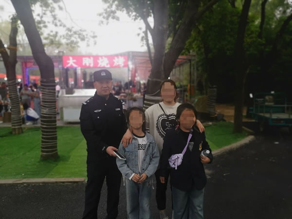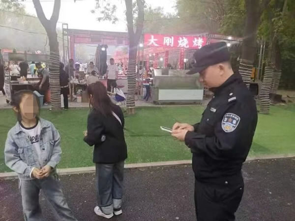 此時,正在美食節執勤的民警們發現了這一情況,他們立刻分成兩組,一組將小女孩帶到身邊,安撫她倆的情緒;一組疏散圍觀的群眾,恢復會場秩序。民警們變成了小女孩的“臨時大哥哥”,在他們的不斷努力下,兩個小女孩終于破涕為笑,說出了母親的名字和電話號碼。民警立刻撥通了孩子母親電話,五分鐘后,小女孩的母親焦急地前來認領。經過身份信息核對無誤,執勤民警將小女孩交給她母親。見到兩個小女孩安然無恙,家長非常激動地拉著執勤民警的手連聲道謝。