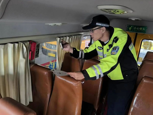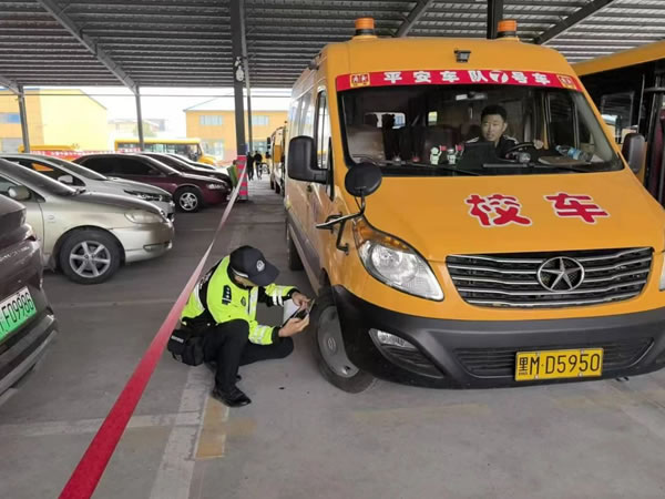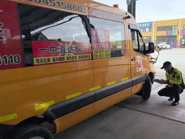 查驗(yàn)過(guò)程中,民警對(duì)校車標(biāo)志、滅火器、安全帶、安全錘、緊急逃生門、車輛燈光、停車指示牌、車輛年檢及保險(xiǎn)、輪胎的安全性能及校車技術(shù)狀況、安全駕駛情況以及校車安全管理措施落實(shí)情況等方面進(jìn)行安全大檢查。同時(shí)認(rèn)真核對(duì)了校車駕駛?cè)说鸟{駛資質(zhì),聽取了校車負(fù)責(zé)人對(duì)校車出行方式、安全隱患排查整治、企業(yè)主體責(zé)任落實(shí)情況介紹,并要求校車駕駛?cè)艘杂X遵守交通法規(guī),安全行駛、平安出行。