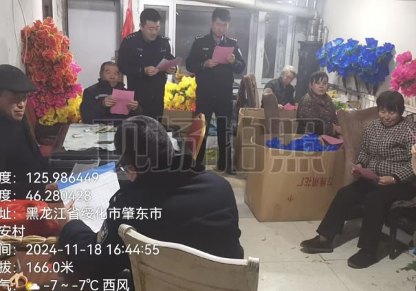 2024年11月18日,肇東市公安局尚家派出所走進紅慶村趙家圍子屯開展打擊網絡謠言研討會,派出所民警與村委會工作人員面對面交流,介紹網絡謠言的種類,識別技巧、法律責任,對已發生的案件進行詳細分析,研討內容十分生動、便于理解。