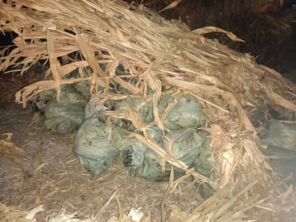 2025年1月15日,躍進派出所工作人員巡邏至轄區福龍村新發屯時,發現一片玉米垛非常可疑。經工作人員檢查,發現玉米垛里藏有袋裝的原油,派出所一邊組織民警保護現場,一邊迅速向局領導進行匯報,局領導高度重視,立即組織警力,對此原油儲存點進行檢查并與大慶市采油十場取得聯系。經工作,查獲了袋裝原油10余袋約2噸,成功搗毀了一處非法儲存原油窩點,原油的來源正在調查中。