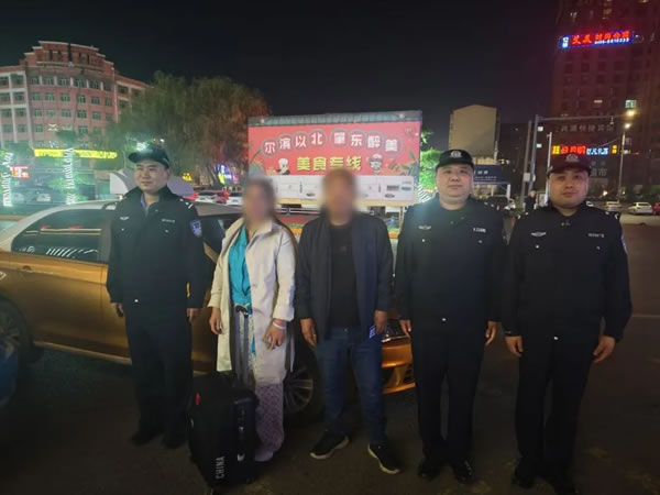 經(jīng)了解,尚女士因趕車匆忙未留意車牌信息,且已無法聯(lián)系司機。巡警隊員一邊安撫其情緒,一邊根據(jù)乘車路線調(diào)取火車站周邊道路監(jiān)控,逐幀排查同時段途經(jīng)車輛。經(jīng)半小時細致篩查,最終鎖定目標出租車并獲取聯(lián)系方式。民警隨即與司機取得聯(lián)系,確認行李箱仍在車內(nèi)后,驅(qū)車陪同尚女士前往約定地點取回失物。