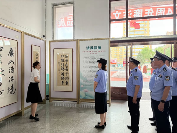 為慶祝中國共產黨成立104周年,深入貫徹中央八項規定精神,推動學習教育不斷深化,7月1日下午,市公安局組織黨員民警到肇東師范學校參觀“慶祝建黨104周年廉潔文化書畫作品展”,黨委委員、政治處主任孫艷會,各單位負責人共計60人參加活動。