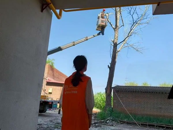 在伐樹當天,東升民政服務站社工也早早來到現場,疏導枯樹附近停放的車輛,引導居民有序繞行。經過專業人員兩個多小時的緊張工作,最終,枯萎樹木被逐一伐倒,危險樹枝全部清理完畢,此處安全隱患得以排除。