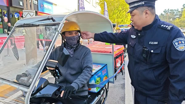 行動中,民輔警在城區(qū)電動車、摩托車通行集中路段,對摩托車、電動車逐輛進(jìn)行檢查,對未正確佩戴安全頭盔的騎乘人員,現(xiàn)場講解正確佩戴頭盔的方法及佩戴頭盔的重要性和必要性。對未佩戴安全頭盔的騎乘人員進(jìn)行教育、警告。并當(dāng)面宣講交通安全法律法規(guī)等安全知識,詳細(xì)剖析駕乘電動車、摩托車不佩戴安全頭盔的嚴(yán)重危害和后果。尤其針對外賣、快遞等配送人員,民輔警在街頭逐一檢查車輛運行手續(xù)和安全性能、頭盔是否符合國家標(biāo)準(zhǔn)等情況,明確要求快遞配送人員必須發(fā)揮重點行業(yè)示范引領(lǐng)作用,時刻戴好安全頭盔,遵守交通法規(guī),做好交通安全的帶頭人。