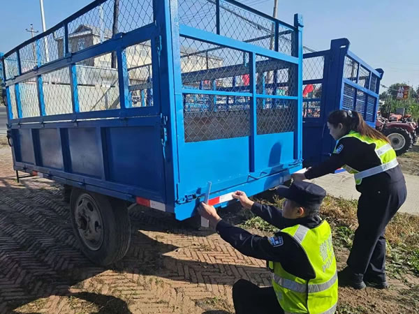 同時(shí),積極開(kāi)展“亮尾行動(dòng)”。民警深入田間地頭和農(nóng)戶家中,為沒(méi)有粘貼反光標(biāo)識(shí)和反光標(biāo)識(shí)陳舊的農(nóng)用車輛及農(nóng)業(yè)機(jī)械粘貼反光標(biāo)識(shí),消除事故隱患。農(nóng)民朋友有的是沒(méi)時(shí)間或不知道到哪里買反光標(biāo)識(shí),宣傳民警親自上門免費(fèi)粘貼,為他們解決了實(shí)際困難,農(nóng)民朋友表示由衷的感謝。
