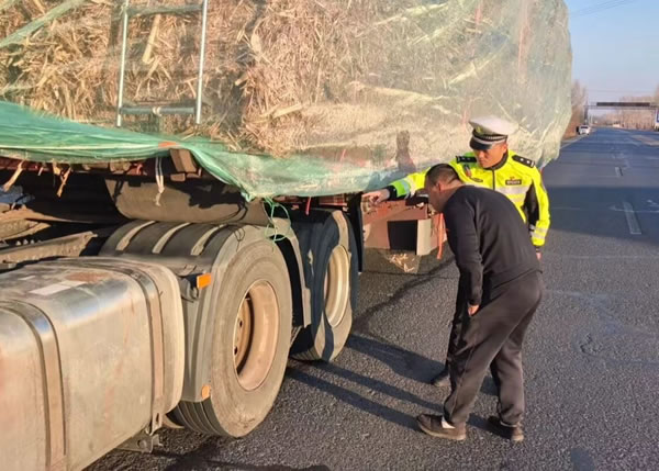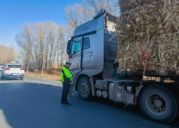 “師傅,您這車苫布沒固定牢,行駛中容易被風吹開,秸稈灑落不僅影響交通,還可能引發事故,我們幫您加固一下。”在檢查現場,每當發現苫布松散、捆綁不牢的車輛,民警都會主動協助駕駛員重新遮蓋,調整苫布位置、拉緊繩索、扣緊卡扣,反復檢查確認穩固后才放行。并再三叮囑駕駛員途中要定時檢查,遇大風、降水等天氣務必減速慢行,用實際行動贏得了駕駛員的理解與配合。