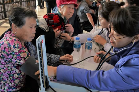 活動中,市第一醫院領導及醫護人員還帶著三萬元的慰問品,看望慰問這里的老人,并為老人們測量血壓、檢查身體,與老人們共度佳節。