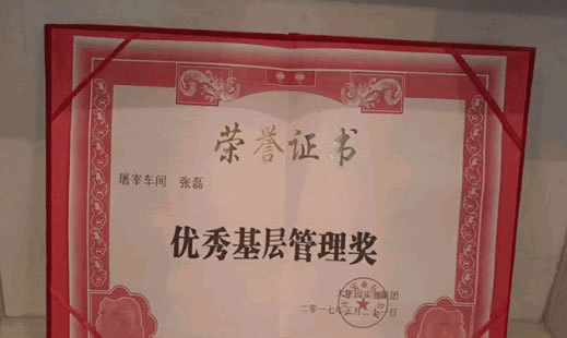 2014年張磊同志多次獲得技術(shù)能手稱號,所帶領(lǐng)的班組榮獲“學(xué)雷鋒標兵班組”; 2016年4月榮獲“肇東市勞動模范”稱號;2016年9月在北京市舉辦的分割技能大賽中獲得“第一名”;所在班組多次被評為先進班組;2017年獲得“龍江工匠”稱號;2018年4月榮獲“綏化市勞動模范”稱號;2018年5月榮獲全市“十佳青年崗位能手”稱號。