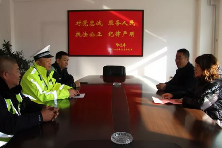 11月16日,肇東市三友小學黨支部副書記董潤生、副校長夏志軍一行三人來到市公安局交警大隊,送上一面寫有“情系師生安全、警校共建和諧”的錦旗和感謝信,盛贊交通民警和輔警認真盡責、熱情服務的奉獻精神,感謝大隊領導對校園交通的重視和支持,副大隊長曲斌、辦公室主任潘洪亮及城鎮三中隊中隊長張廣天與校方領導座談,共同探討進一步加強校園周邊交通環境管理的具體工作措施。