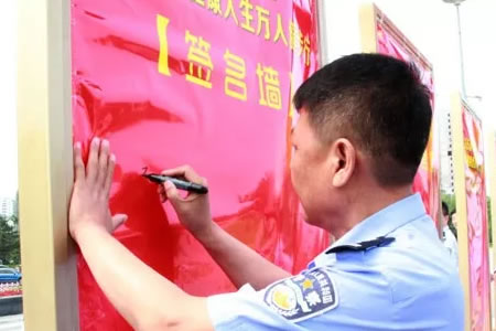 儀式上,王明天同志致辭,學(xué)生代表發(fā)出倡議,號(hào)召?gòu)V大群眾從自我做起,自覺(jué)拒絕毒品、珍愛(ài)生命,打造健康人生;開(kāi)展萬(wàn)人簽名活動(dòng),社會(huì)各界及廣大群眾踴躍在萬(wàn)人簽名墻上簽名,表達(dá)禁絕毒品的堅(jiān)定決心;由禁毒委成員單位和廣大群眾、在校學(xué)生組成的萬(wàn)人健步行隊(duì)伍,在政府廣場(chǎng)徒步健身;集中銷毀收繳毒品,向社會(huì)各界展示禁毒工作成果;在活動(dòng)現(xiàn)場(chǎng)懸掛禁毒條幅、放置禁毒展板、發(fā)放禁毒宣傳資料、設(shè)立咨詢臺(tái)、展示仿真毒品和吸毒工具,結(jié)合典型案例向群眾宣傳講解毒品危害,進(jìn)一步提高廣大群眾防毒拒毒意識(shí)。