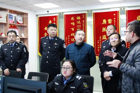 2019年12月4日綏化市公安局黨委委員、副局長卜啟軍深入肇東檢查指導工作,肇東市公安局局長張國輝,副局長尹德峰陪同一行參觀黑龍江騰達安泰保安服務有限公司,對騰達公司110視頻聯網報警平臺系統運營,校園安全一鍵報警系統,物聯網智能安防技術應用,智慧社區智能門禁人臉識別系統前沿技術,安防產品及設施等高度認可,詳細了解騰達公司110聯網報警、校園安全一鍵報警、人臉識別智能門禁、智慧小區社區綜治管理、視頻大數據集中管理、智慧消防電力火災預警等相關系統平臺功能及應用,并就如何進一步加強安防產品推廣和應用、社會資源聯網、智能化小區建設等進行深入座談交流,聽取安防企業在整合資源和提升技術方面的匯報和建議。他指出,安防建設是社會治安防控體系的核心內容,是創新社會管理和服務民生的重要方式。安防企業要從戰略性角度出發,依靠政府主導、公安支持、企業先行,找準立足點,站穩出發點,抓住有利機遇,多方整合社會資源,加大建設投入力度,打造具有自身亮點特色的智能化聯防報警系統及智慧化安防小區,發揮維護穩定、保障民生、服務群眾的重要作用,為平安肇東建設作出更大貢獻!